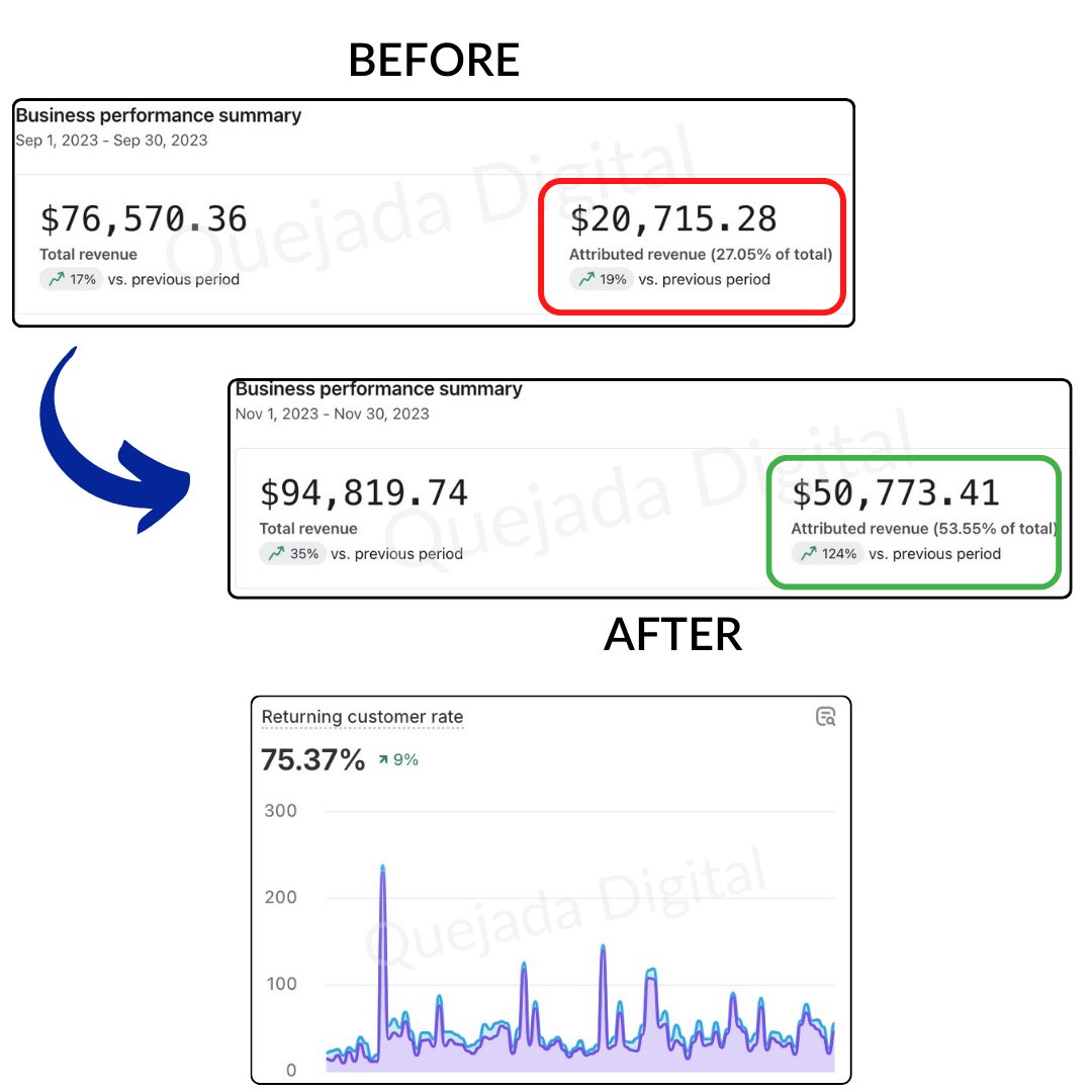 This pet ecom brand generated 18% email revenue while working with an agency with multiple services. When we stepped in, we increased that revenue to a whopping 49%, a 261% increase, in just 60 days.