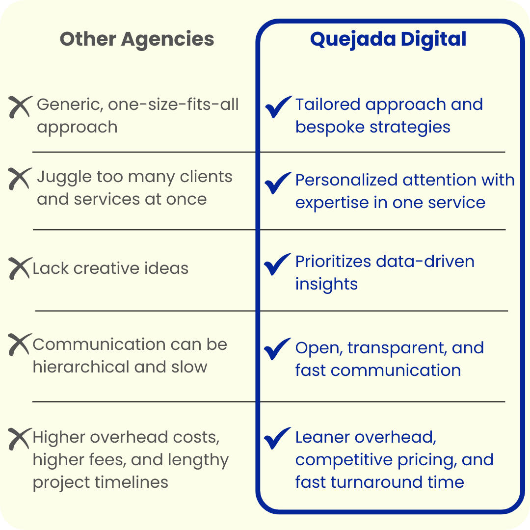 Hi my name is Kifner and I’m the founder of Quejada Digital. I am a licensed pharmacist who nerds about science.Quejada Digital is born out of passion for data-driven results and creativity. That’s why we craft bespoke strategies that resonate with your audience and deliver measurable results.With Quejada Digital, you're not just getting an agency; you're getting a trusted partner invested in your growth and dedicated to helping your e-commerce business soar to new heights.